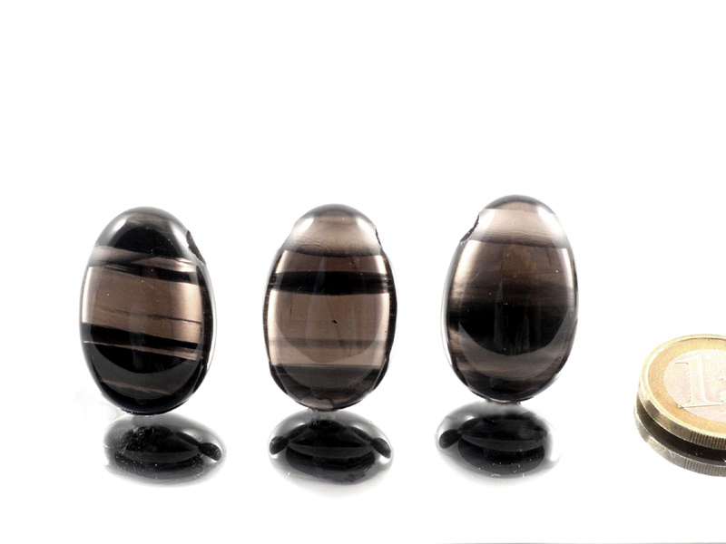 These exceptional drop beads are carved from Midnight Lace Obsidian, famous for its smoky-translucent color and straight black lines. In the shape of a large water drop, they are drilled from side to side at the top. The drilled hole is about 3 mm in diameter, the perfect size for our leather cords or blank necklaces and suitable for wire wrapping or findings. They are highly polished. Each piece is slightly unique!
